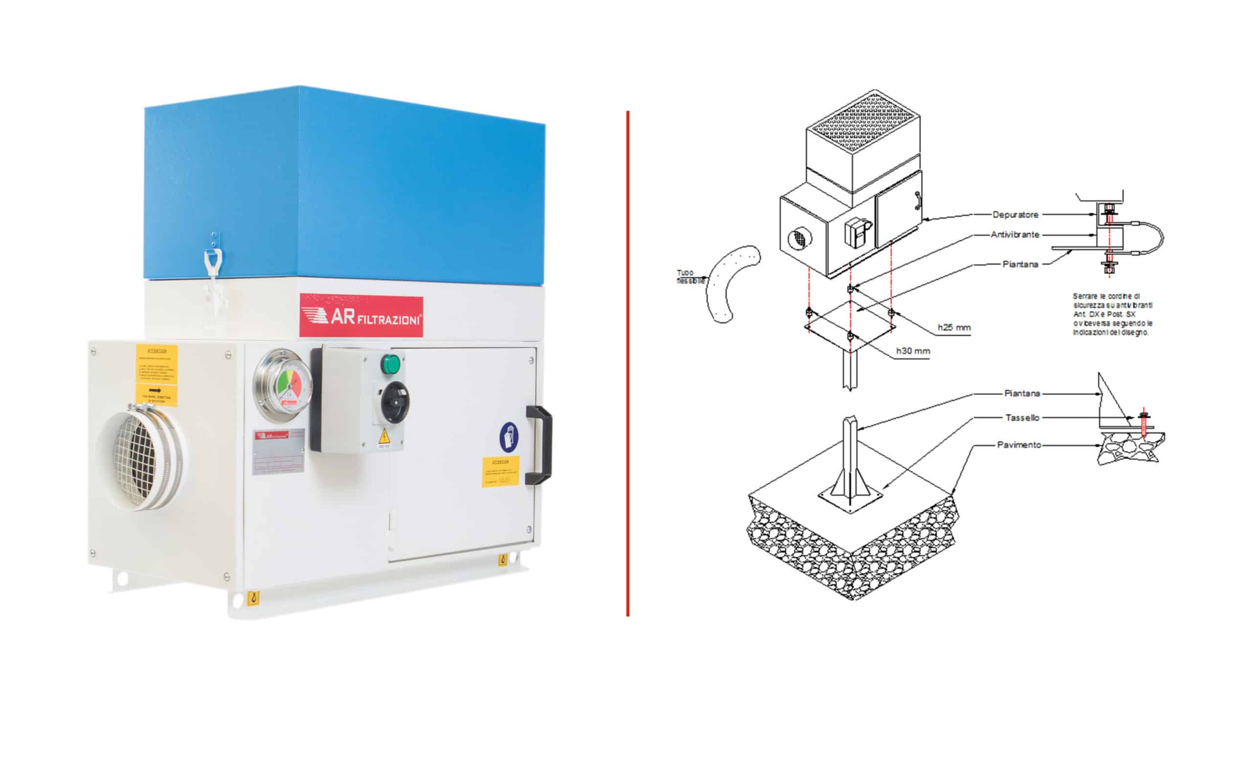 The technical staff, with a deep knowledge of the sector and forty years of experience, provides the problem analysis at the customer, both in Italy and abroad, to ensure an optimal choice, proper installation and correct use of the air cleaner after the purchase.